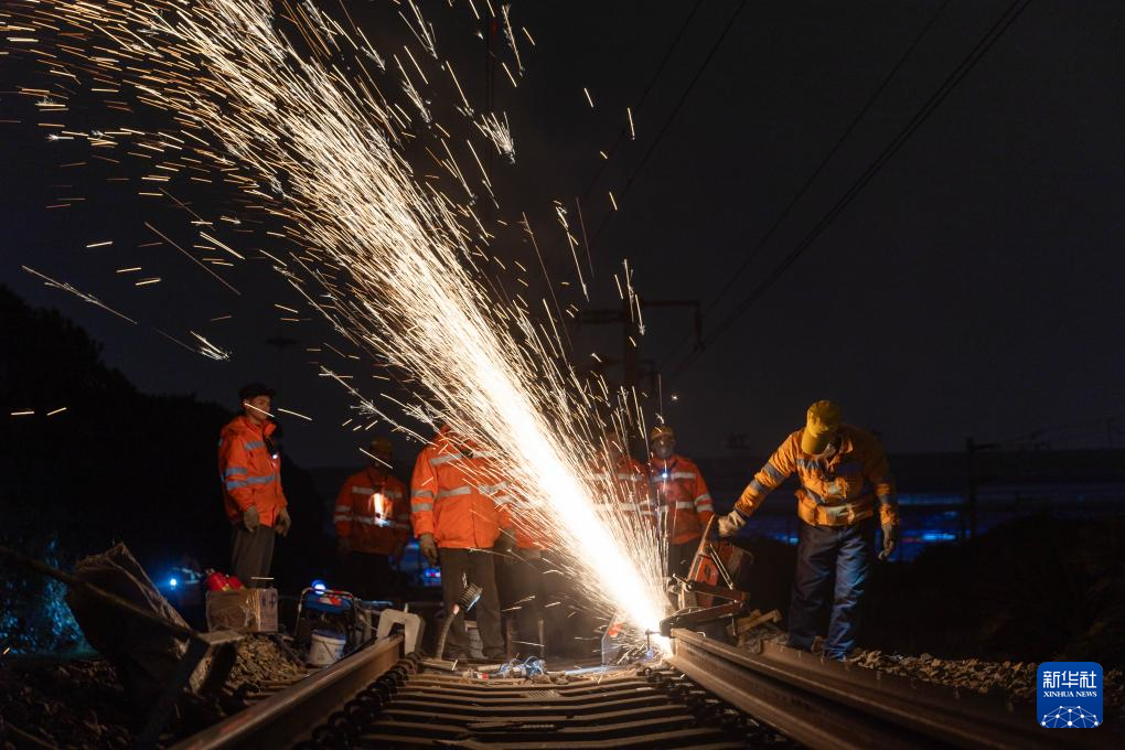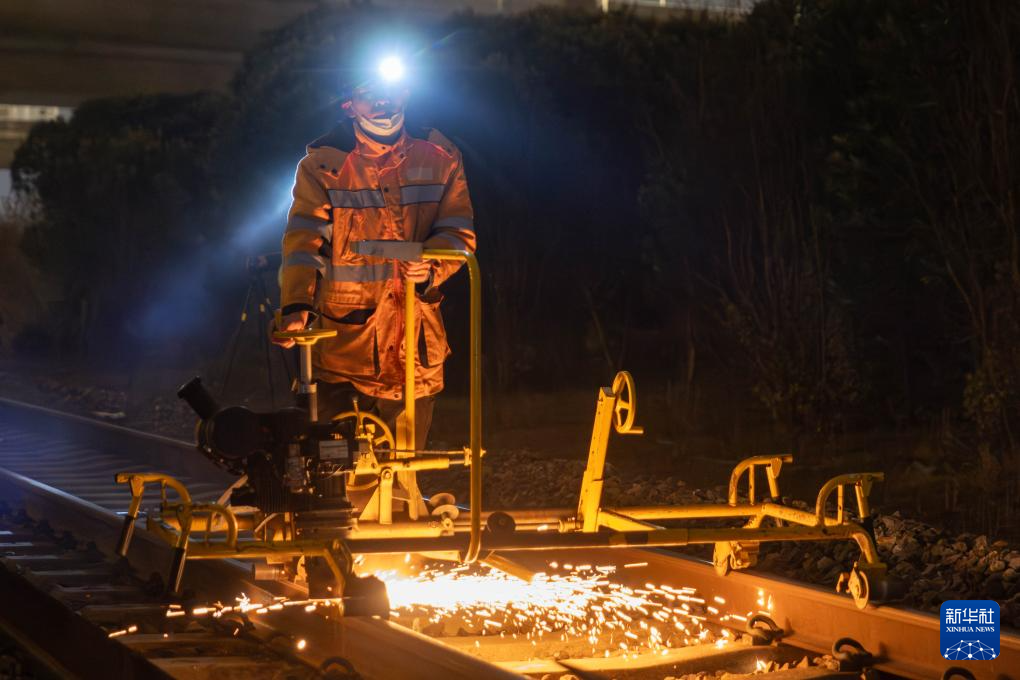 当日凌晨,中国铁路上海局集团有限公司上海工务段工人对上海虹桥站站区共计500米长的铁路钢轨进行换轨施工,从切割旧轨、安装新轨到新轨焊接打磨,各道工序有条不紊,为即将到来的春运行车提供安全保障。