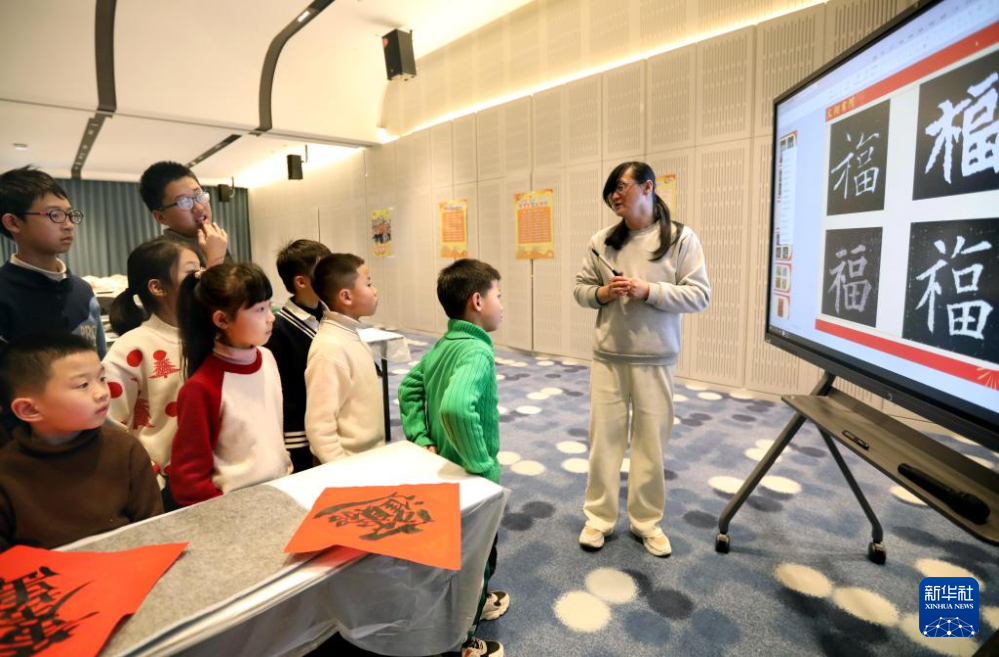 1月31日,在书法课上,老师向寒托班的同学们介绍写福字的年俗和历史。