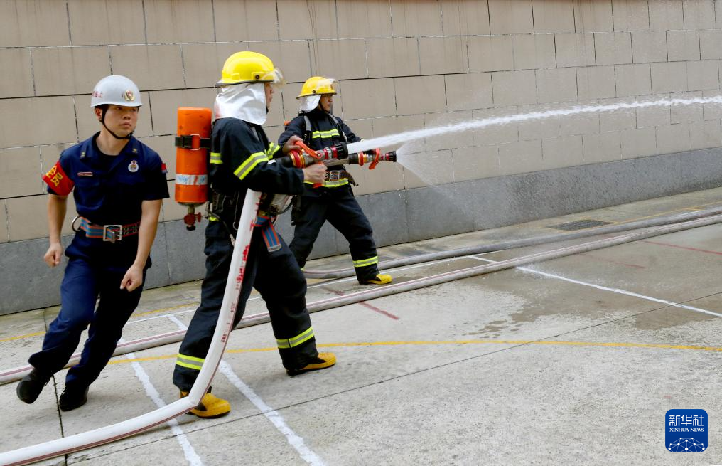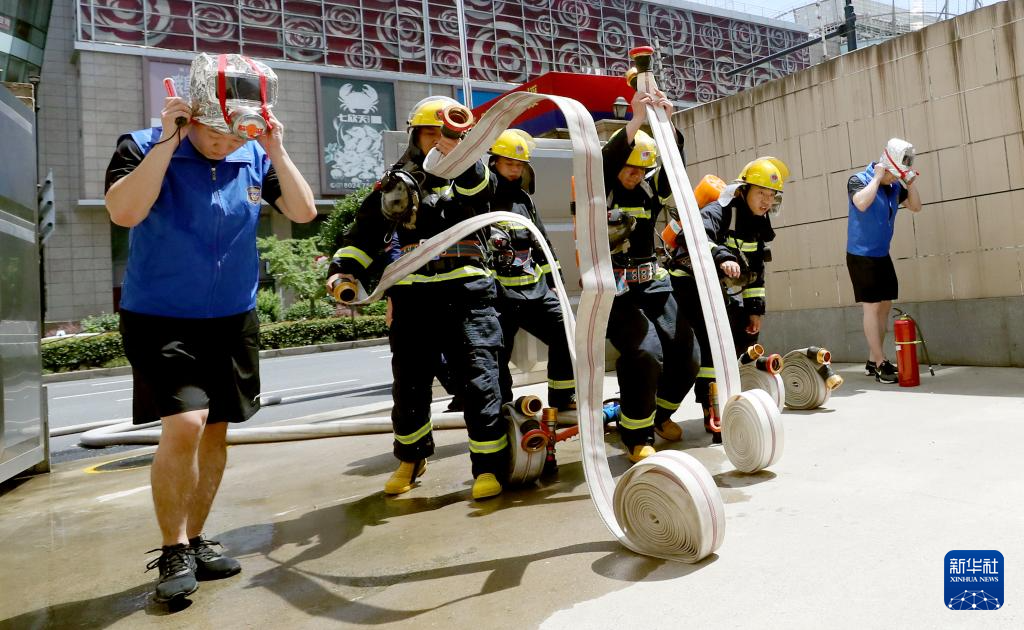 7月16日,消防志愿服务队队员在进行消防演练。