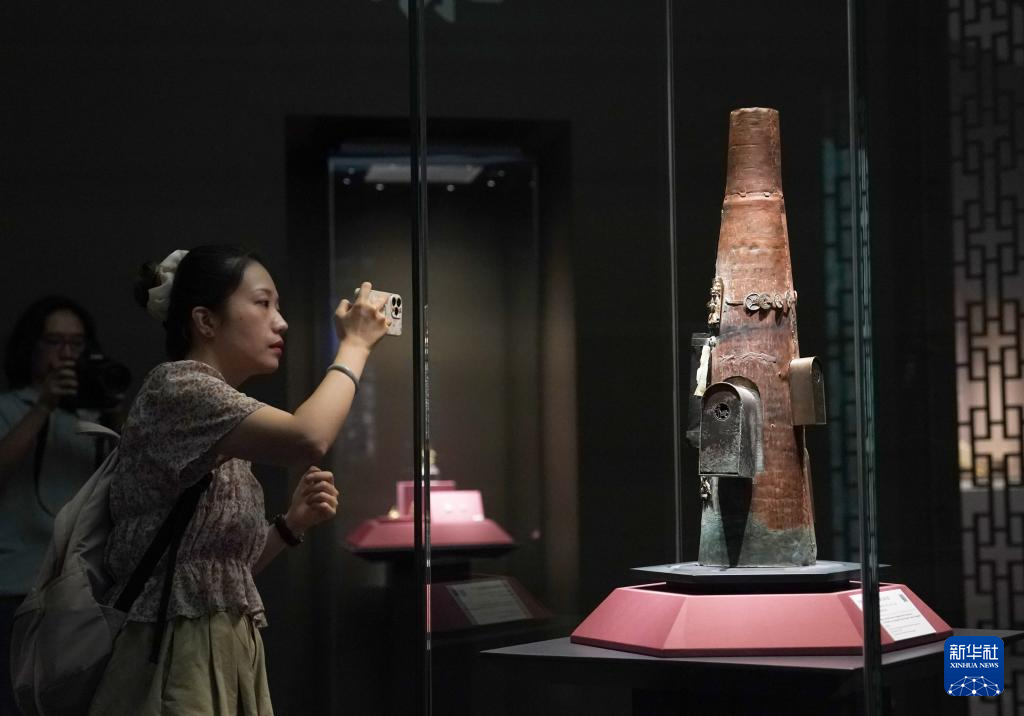 8月13日,媒体人员在拍摄嵌福禄寿喜盒铜宝珠内胆。