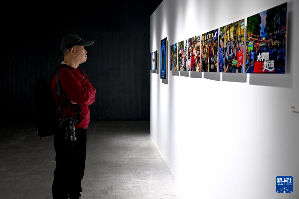 11月12日,观众在2024上海国际摄影节参展照片前驻足观看。