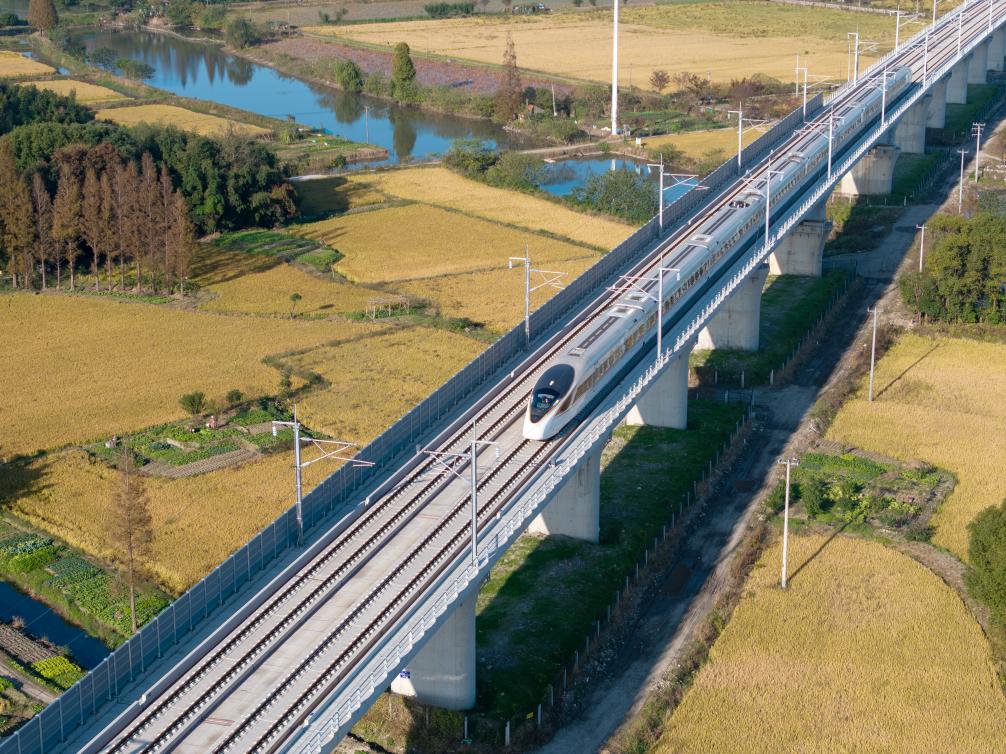 沪苏湖高铁自2020年6月开工建设,设计时速350公里。沪苏湖高铁建成运营后,将进一步优化上海铁路枢纽布局,完善区域路网布局,便利沿线人民群众出行。