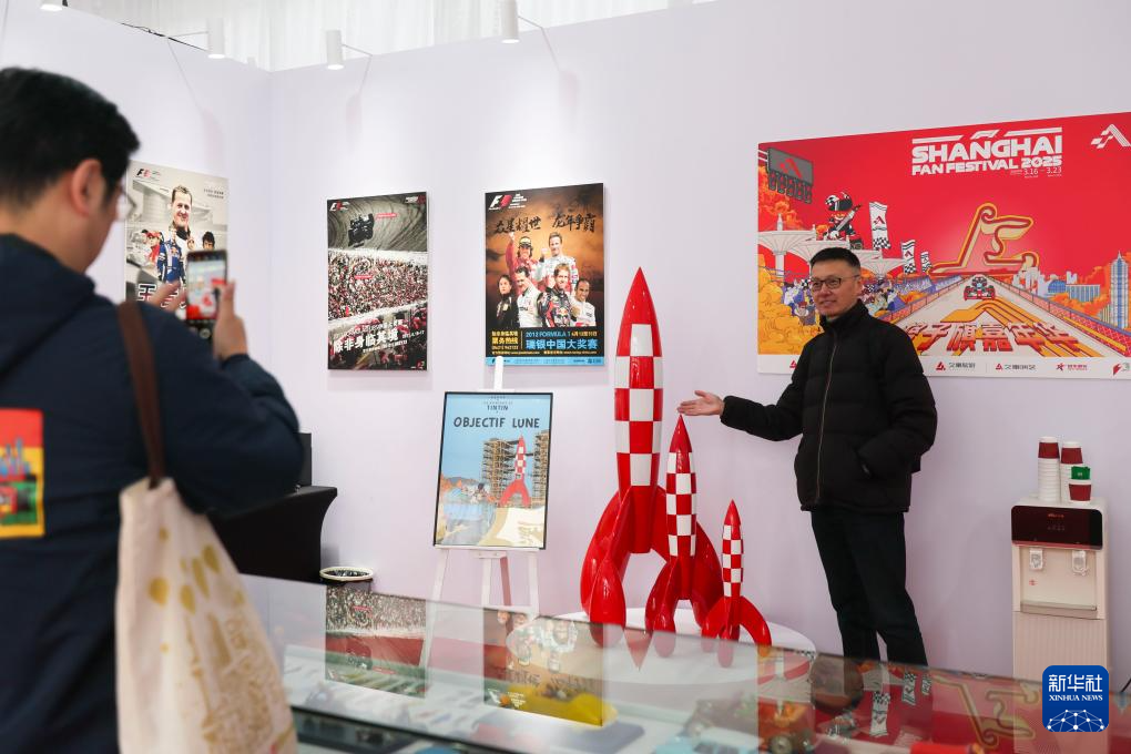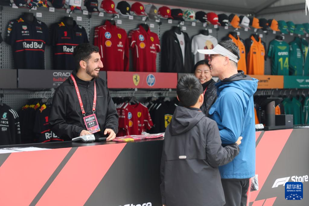 3月16日,人们在F1纪念品商店选购F1周边潮品。