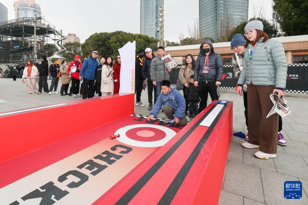 3月16日,人们在“格子旗嘉年华”体验互动闯关游戏。