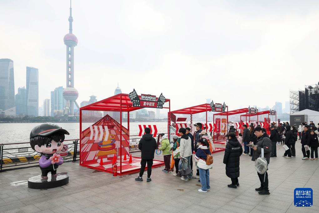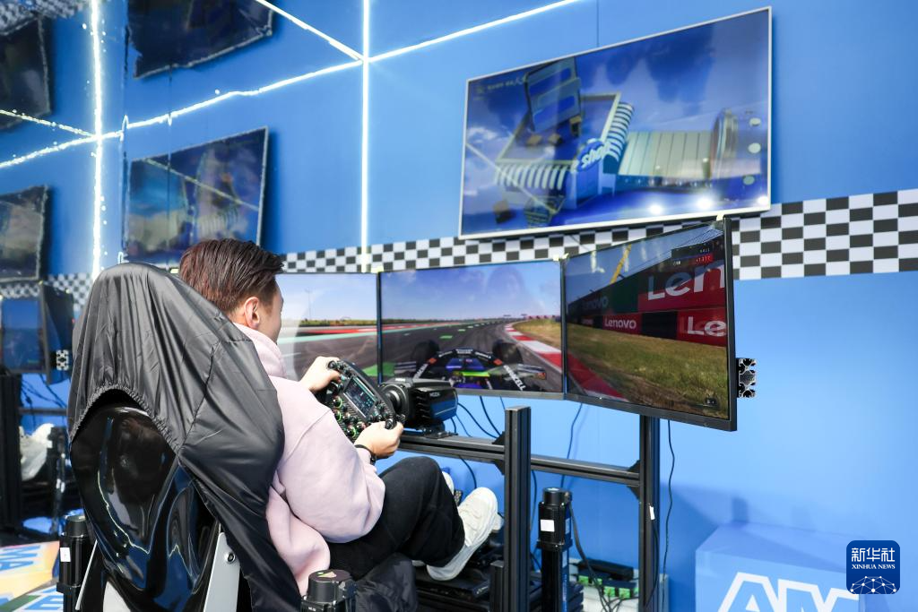 3月16日,在上海北外滩国客中心码头,人们模拟体验在上海国际赛车场驾驶赛车。