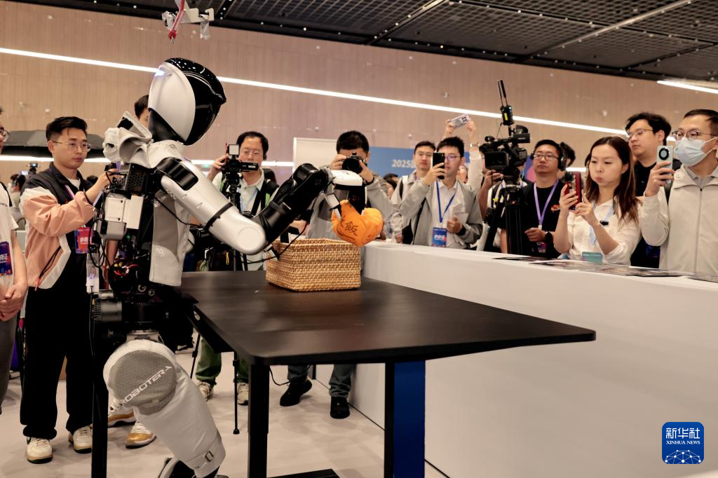 5月29日,参观者拍摄机器人进行家庭场景杂物整理比赛。