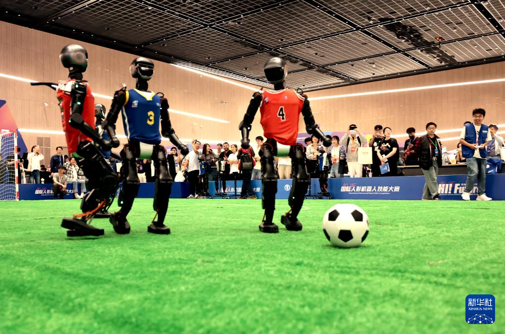 5月29日,机器人“选手”参加足球比赛。