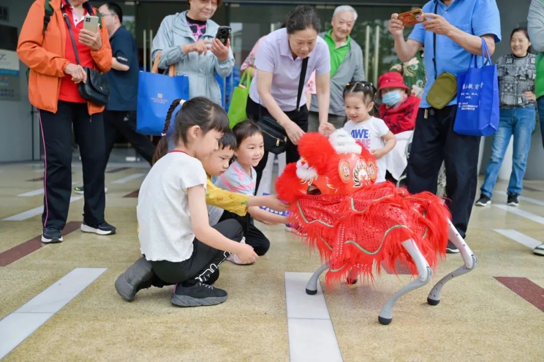 市集创新服务供给,摊位形态丰富多样,超越传统商品销售范畴。公益服务类传递邻里温情;表演类如童趣巧虎秀、科技感AI机器狗轮番上演;咨询类提供政策解读、健康指导等贴心服务;参与体验类如非遗糖画制作、亲子手作等尤其火爆,吸引居民特别是亲子家庭深度互动。“甜灵市集”日益成为田林居民“家门口”的“一站式”幸福生活圈,让便捷服务、实惠购物、文化盛宴、亲子时光与公益参与触手可及。