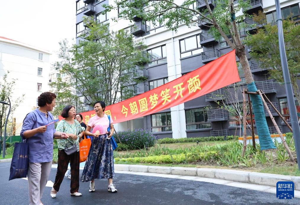 居民行走在拆除重建后的谈家桥小区内(9月15日摄)。