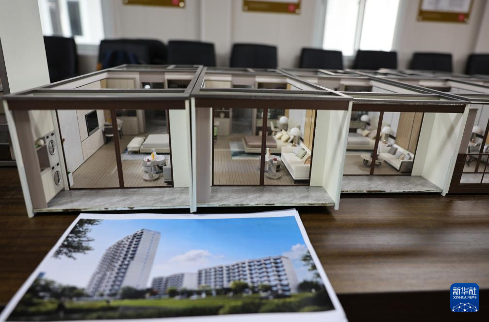 10月23日在黄兴路1039弄小区改造项目部拍摄的小区改造效果图和房型模型。
