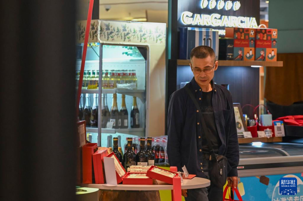 第八届中国国际进口博览会将于11月5日拉开帷幕,位于上海市南京东路的“进博集市城市会客厅”汇聚多种进博会同款好物,吸引不少市民游客前来购买。