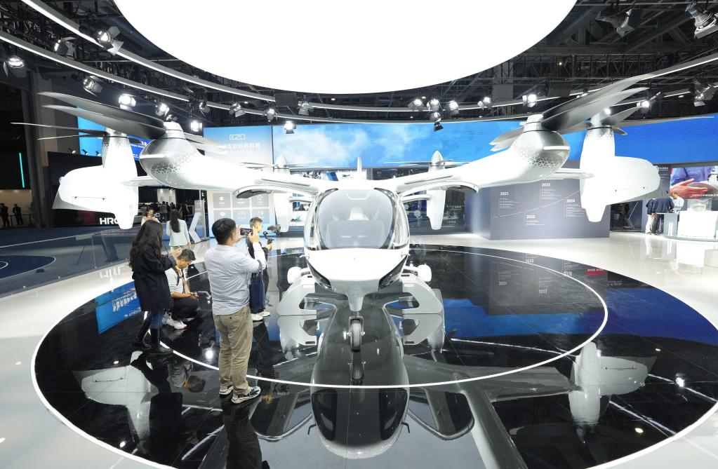 11月5日在第八届进博会汽车及智慧出行展区拍摄的时的科技E20 eVTOL(电动垂直起降飞行器)。