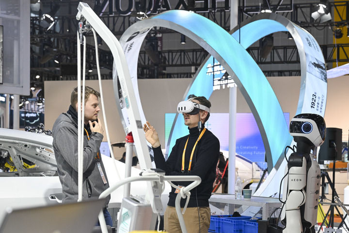 11月4日,在第八届进博会技术装备展区,工作人员在调试产品。新华社记者 陈浩明 摄