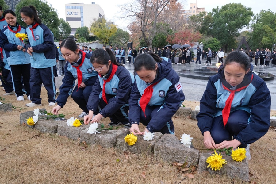 参与国家公祭日活动的学生。新华网史依灵 摄