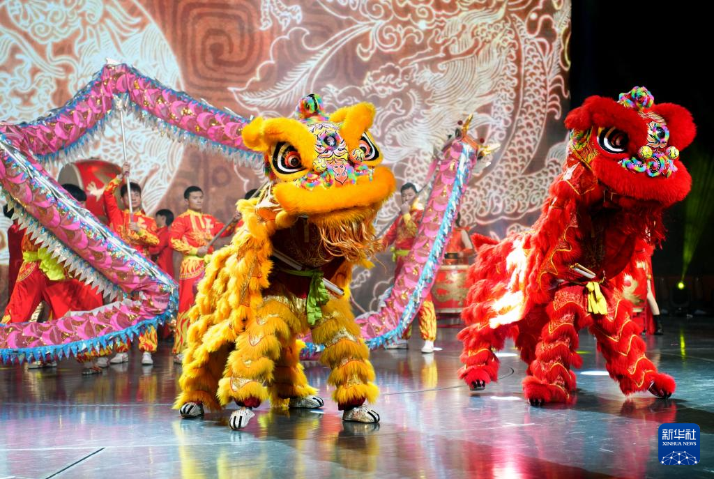 1月9日,上海三林龙狮队在展演现场表演。
