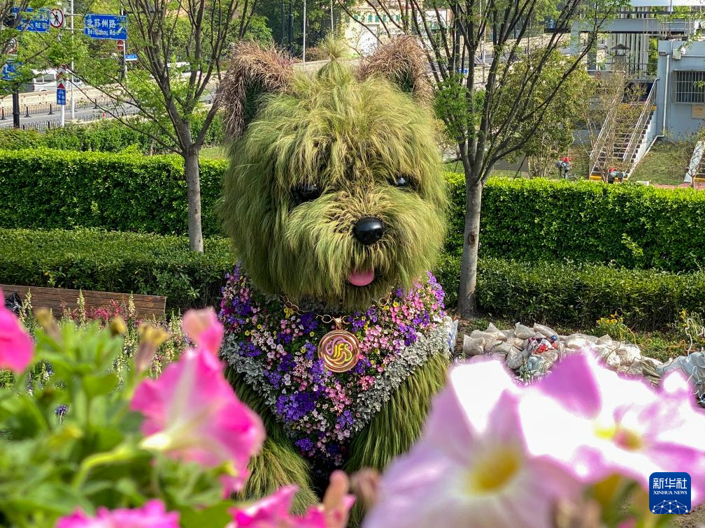新华网上海4月11日电(记者陈浩明)近日,位于上海市静安区苏河万象天地的一条“毛茸茸的植物小狗”在社交媒体走红,这是将于4月18日开幕的上海国际花卉节静安分会场的一个景点——“花漾萌宠乐园”。